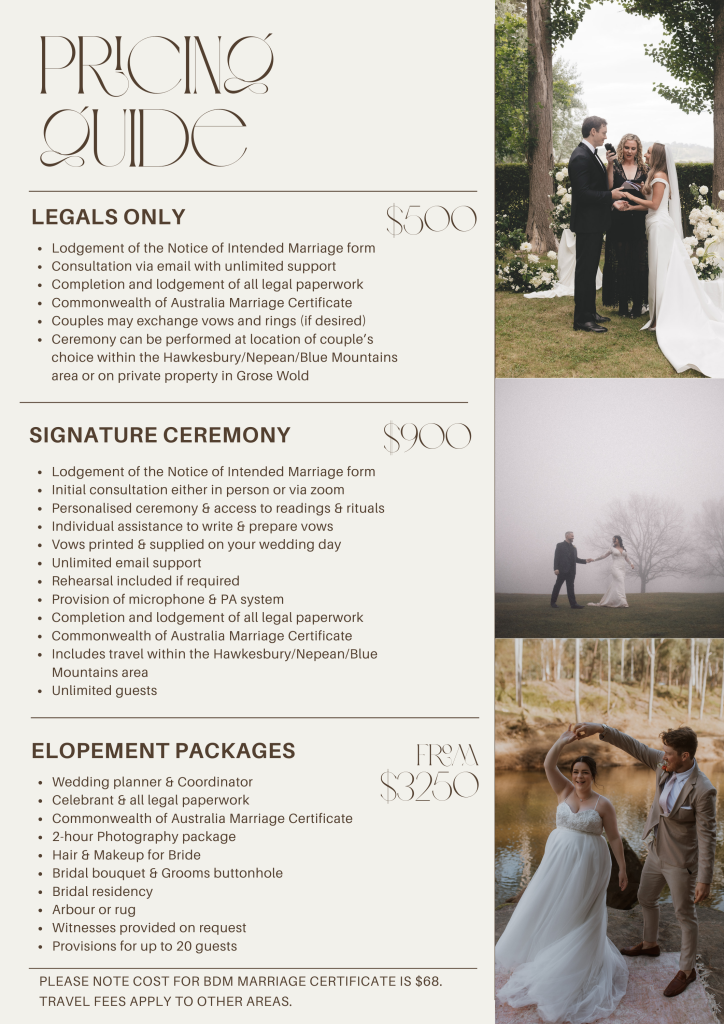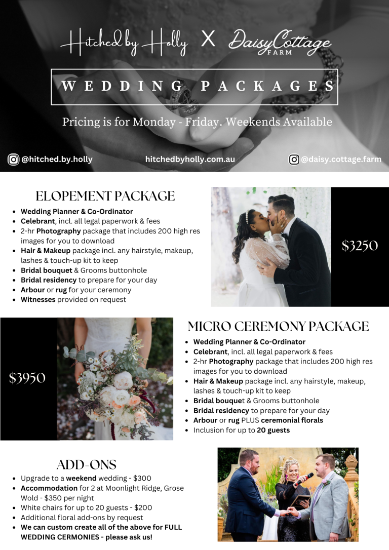 ~ ELOPEMENT & MICRO WEDDING PACKAGE OPTIONS ~ Price below includes ceremony and photos on private property in Grose Wold or at any location of your choosing across the Hawkesbury, Nepean & Blue Mountains.